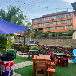 Nuestros huéspedes tienen de obsequio dos botellas de cerveza, si desean una botella de vino o ron de las que exhibimos tienen un costo de 12 USD cada una.