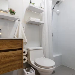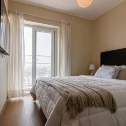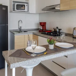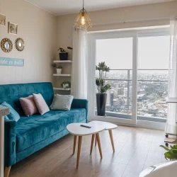 Departamento de 1 dormitorio completamente equipado y amoblado, para que te sientas como en casa. Con 40 m2 de confort, cuenta con una sala comedor integrada con sofá cama y una cocina abierta completamente equipada, además de un dormitorio con una cómoda cama queen size, sábanas de algodón, internet de alta velocidad y Netflix. También cuenta con dos televisores de pantalla plana de 50″ y 45″, completando la experiencia de confort. La sala y el dormitorio cuentan con mamparas que se extienden desde el piso hasta el techo y conducen a un balcón panorámico que ofrece impresionantes vistas de la ciudad.