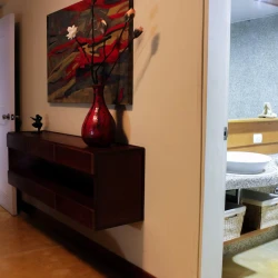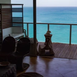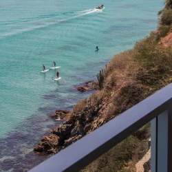 Una de las joyas de nuestro apartamento es, sin duda, la impresionante vista al mar que pueden disfrutar desde la terraza y el salón. Imaginen pasar las tardes contemplando el atardecer, con colores vibrantes que pintan el cielo mientras escuchan las olas. Este espacio se convierte en el escenario perfecto para crear recuerdos inolvidables y disfrutar de la belleza natural de Margarita.