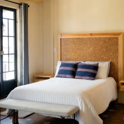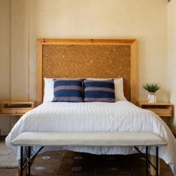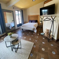 El área de descanso está pensada para garantizar un sueño reparador y revitalizante. La cama, acogedora y confortable, te invita a relajarte y desconectar después de un día lleno de actividades. El baño complementa esta sensación de bienestar, ofreciendo comodidades que van desde una ducha rejuvenecedora hasta detalles que hacen que cada momento sea placentero.